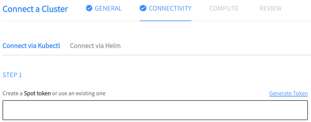 On the Connectivity page, create a Spot token (or use an existing one) and copy it to the text box. You may also want to copy it to a safe place so that you can use it again.